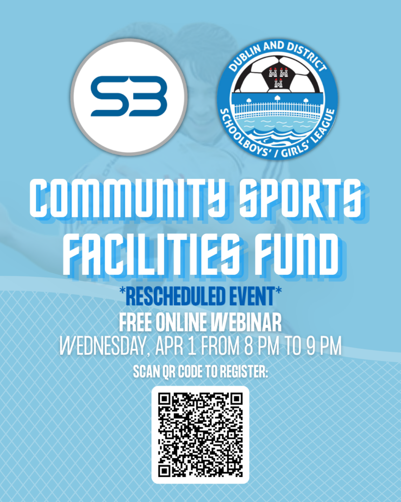 This ‘Webinar’ is organised by our partners ‘S3 Solution’ & should be of huge interest to clubs applying for the ‘Sports Capital Grants’ to be announced in April/May.